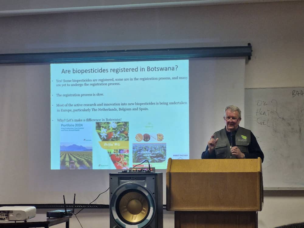 Professor Graham Hall, a Principal Entomologist and CEO of Insect Factory Proprietary Limited in Botswana, emphasized the critical role of conserving beneficial insect populations within agricultural ecosystems. He underscored that the sustainable management of these insects is essential for enhancing soil health, pollination services, and biological pest control, thereby fostering resilient farming systems. “We believe healthy ecosystems are fundamental to our future”. He also emphasized the importance of integrated pest management and the use of biopesticides to more effectively manage pests.