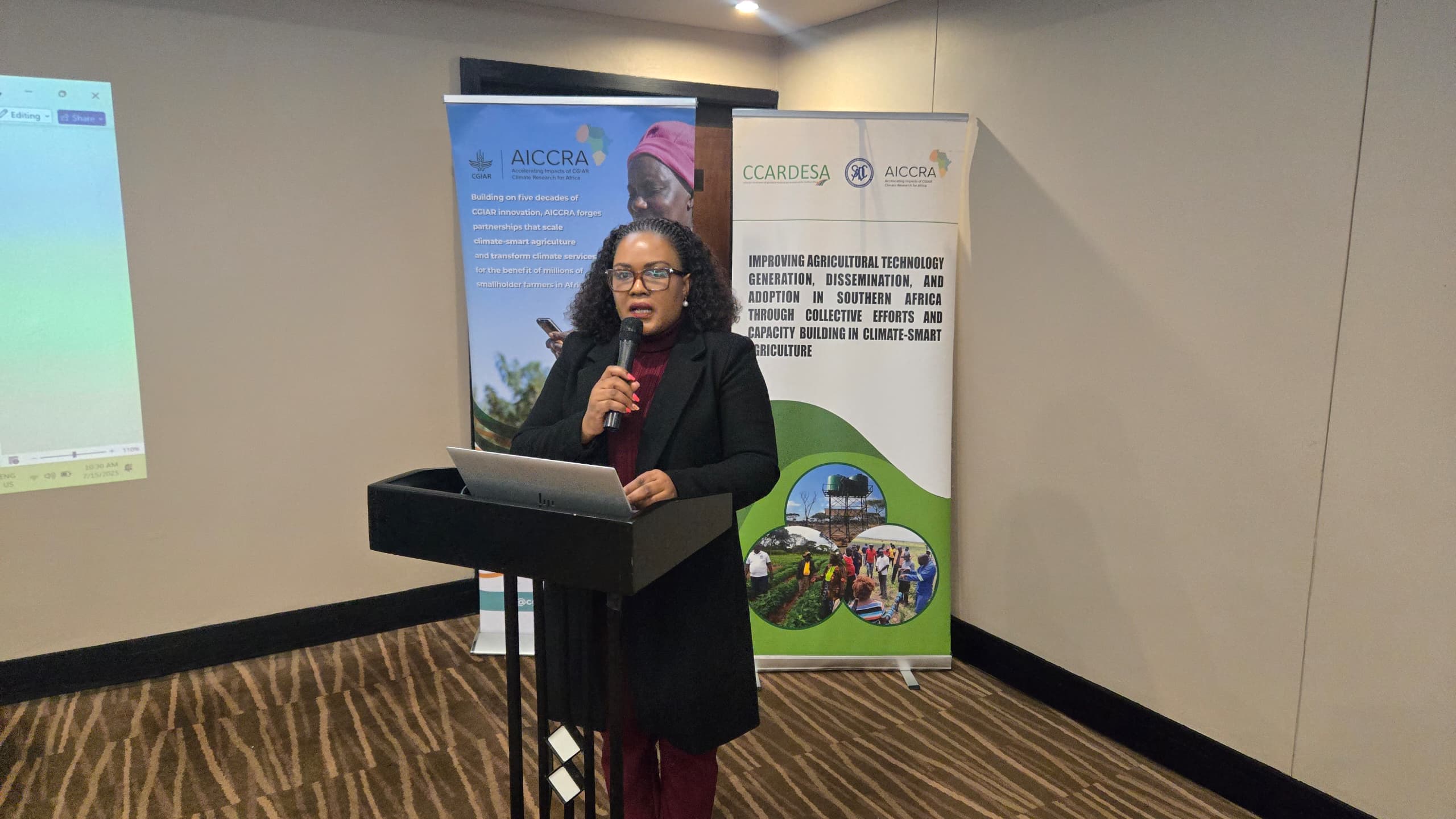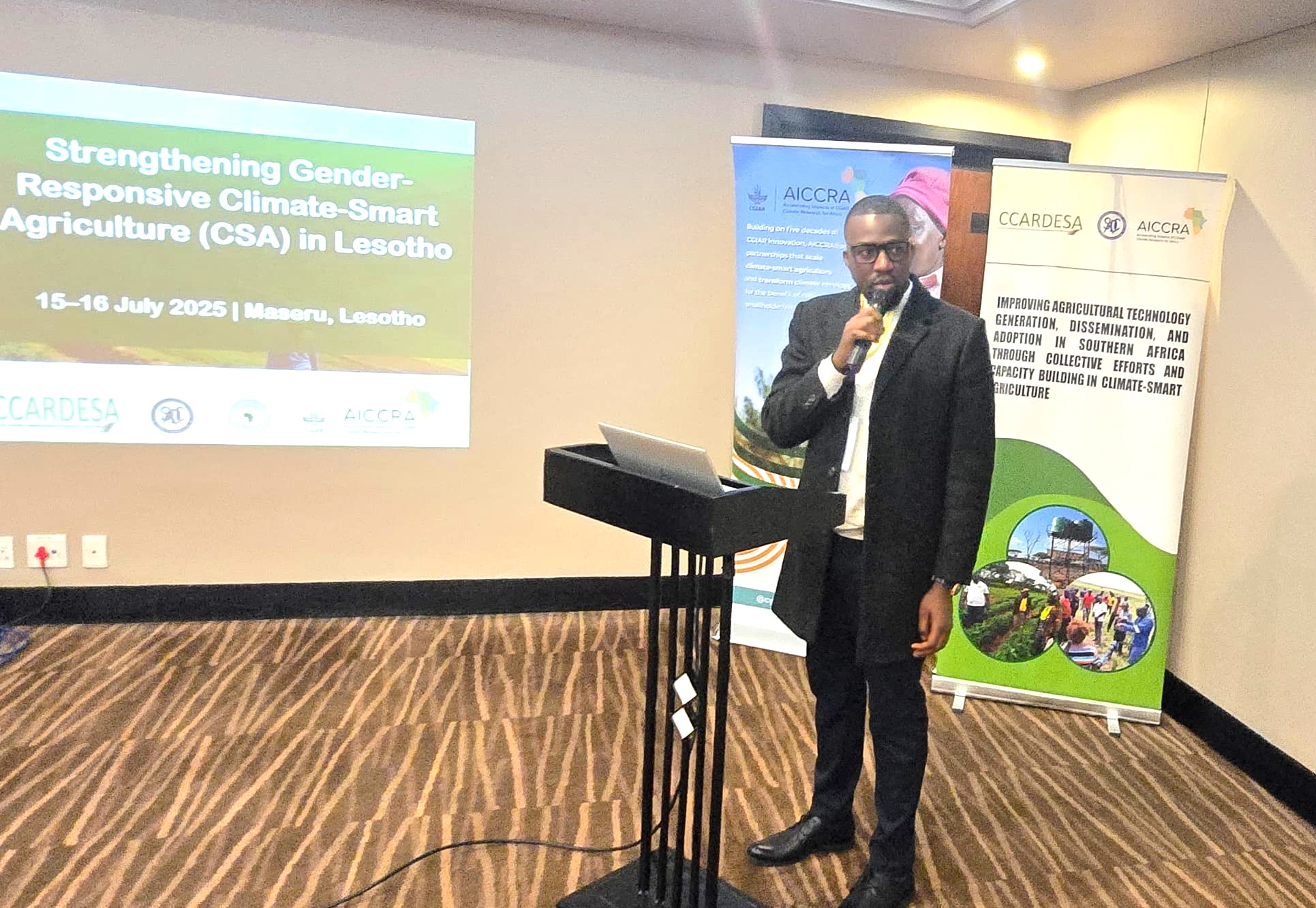 Speaking on behalf of the Executive Director, Prof. Cliff Dlamini, Ms. Futhi Magagula, Special Projects Coordinator and the AICCRA Coordinator, started her remarks with a powerful message. “The SADC region is highly vulnerable to climate risks, cyclones, droughts, floods, and rising temperatures, which threaten its food systems, rural livelihoods, and aggravate existing inequalities. CSA offers a pathway to resilience, but it must be gender-responsive and inclusive.” She emphasized the importance of women in agriculture, the barriers they face, and the need to integrate indigenous and gender perspectives in CSA strategies. She called for joint efforts by governments, NGOs, researchers, and partners to build a climate-resilient future for all. CCARDESA extends its gratitude to the Ministry of Agriculture and Food Security, Lesotho, FANRPAN, AICCRA, the World Bank, and all participants for their collaboration and commitment.