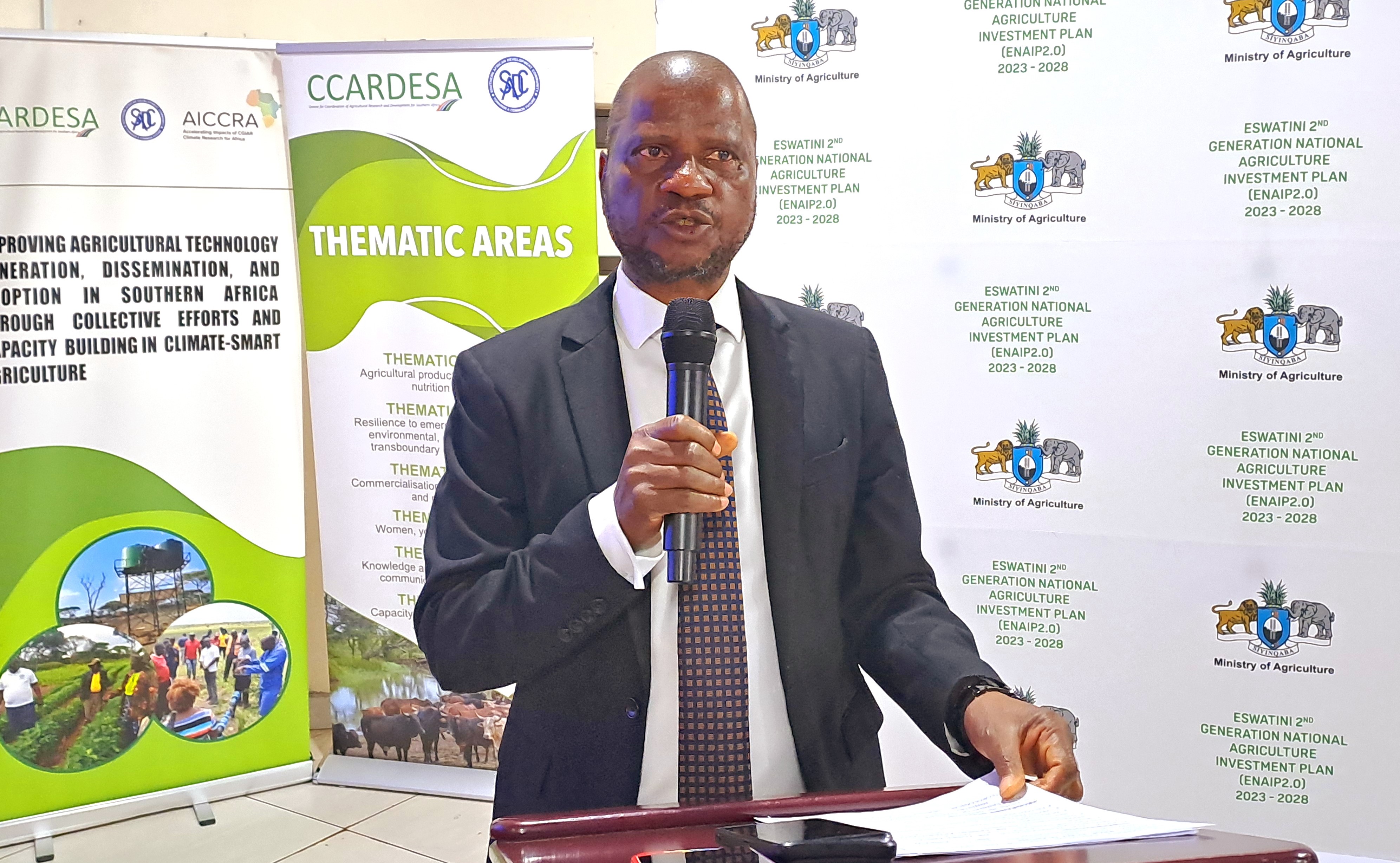 During the opening ceremony, Honourable Mandla Tshawuka, the Minister of Agriculture, emphasized the critical role of the workshops in managing climate-related risks in the agricultural sector. He further expressed gratitude to CCARDESA for its leadership in coordinating regional research efforts. The Minister reiterated the government's commitment to climate action under the "Nkwe" mandate, which aims to eradicate hunger and poverty in Eswatini in the shortest possible timeframe, as advocated by His Majesty King Mswati III. Furthermore, this priority is woven into all national development frameworks and aligned with the Sustainable Development Goals (SDGs), reflecting our holistic approach to sustainable development.